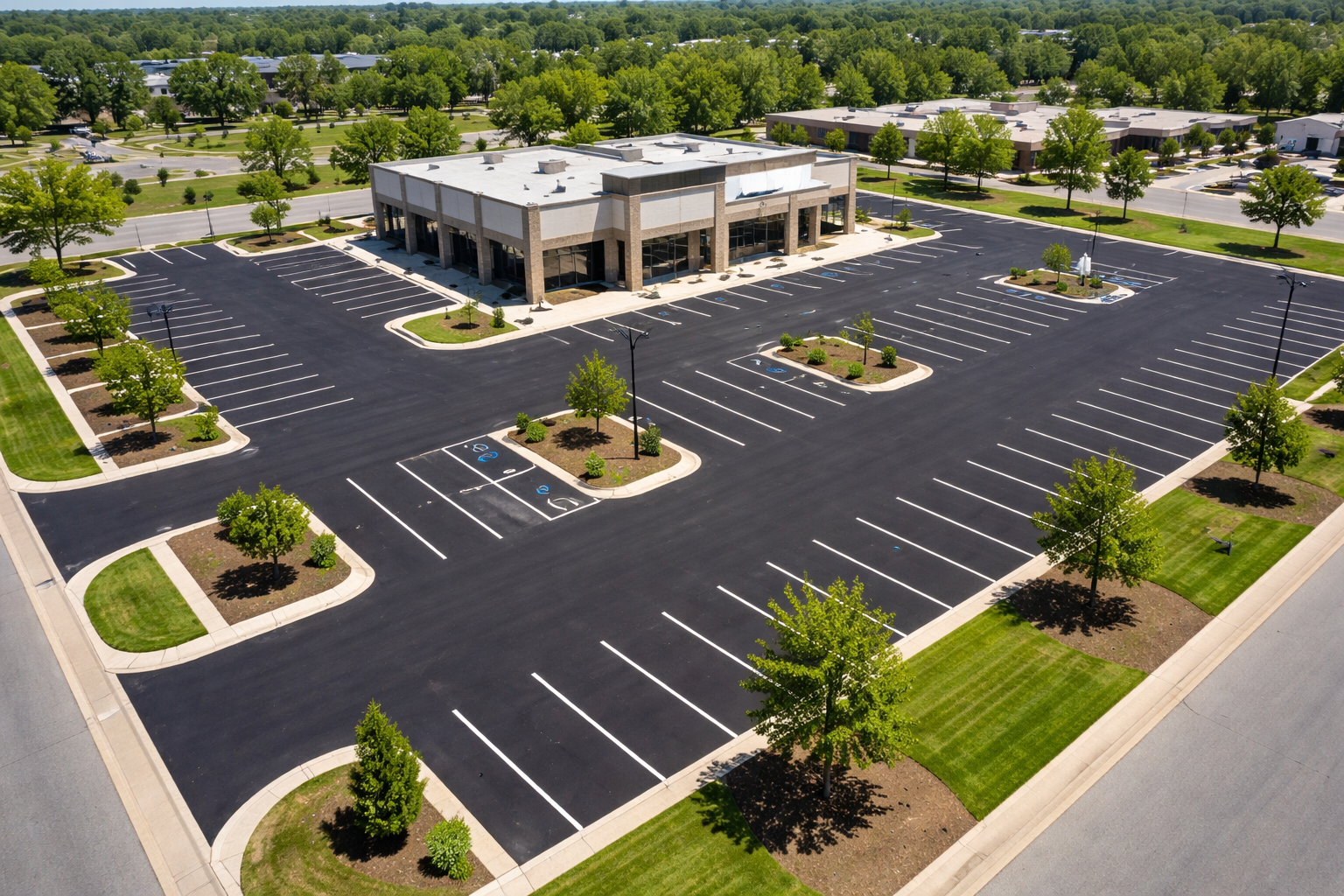 Sealcoating protects the asphalt surface while restoring a clean, professional appearance for the property.